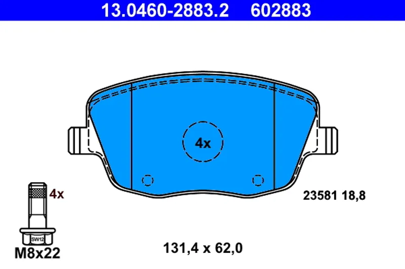 - 13.0460-2883.2 Комплект тормозных колодок, дисковый тормоз
