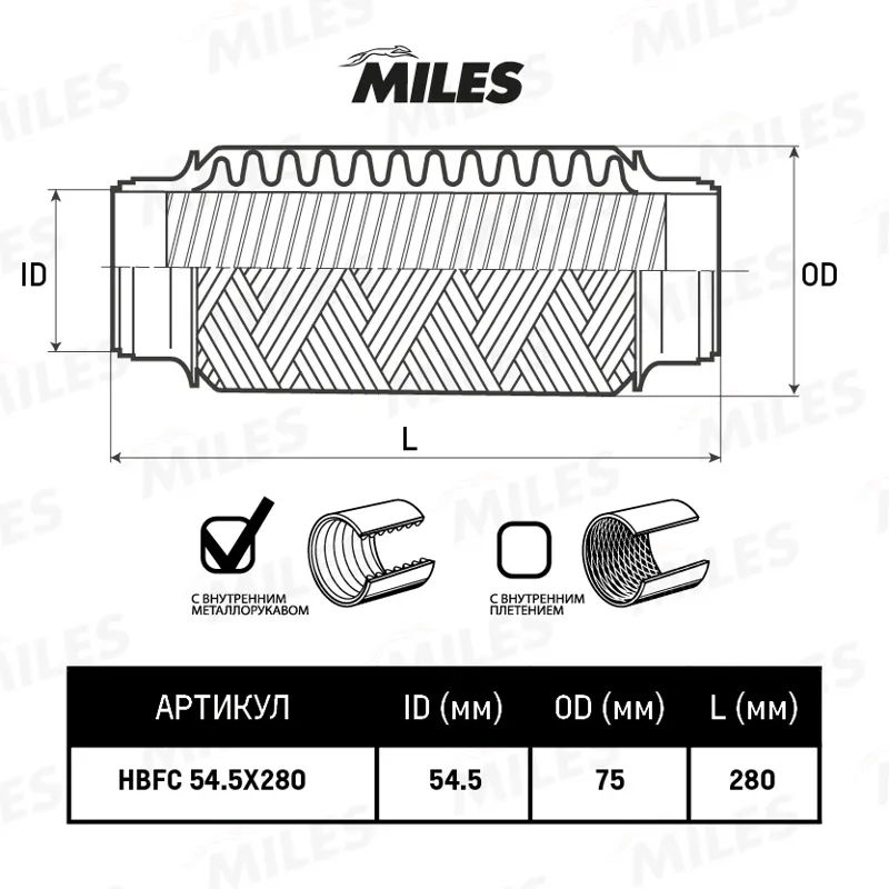 - HBFC545X280 Труба гофрированная с внутренним металлорукавом 54.5X280