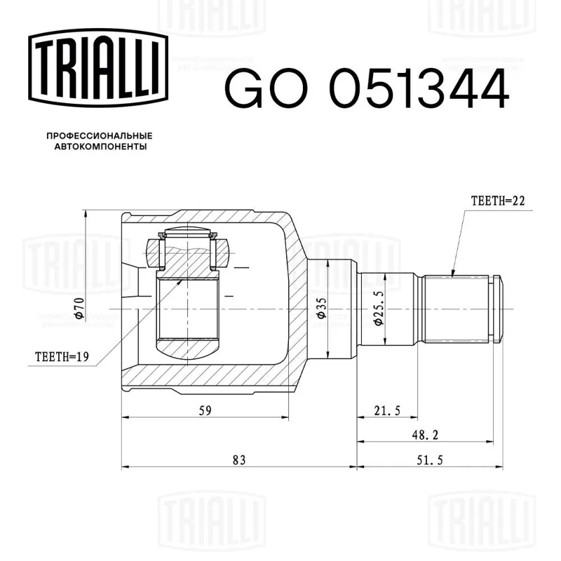 - ШРУС внутренний L=R (компл.) GM Matiz/Spark 98-> mot.0,8/1,0L (z=22/19) /АКПП GO 051344
