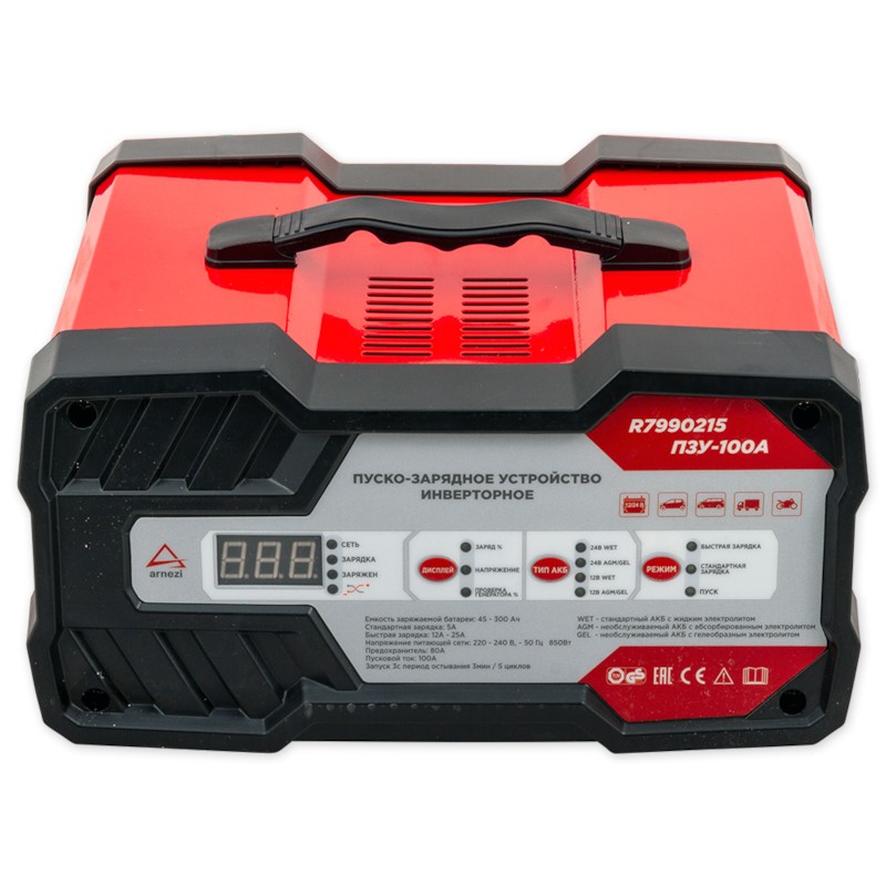 - Зарядно-пусковое устройство ПЗУ-100А (12В/24В, 5-25А, акб 45-300Ач, пуск 100А) R7990215