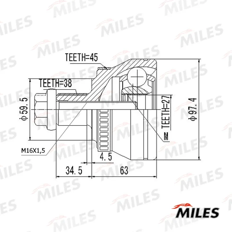 - ШРУС наружный с кольцом ABS 38x59,5x27 ABS:45T AUDI: A4 1.8T/2.5TDI 00-04 , A4 УНИВЕРСАЛ 1.8T/2.5TDI 01-04 , A4 КАБРИО 2.5TDI 02