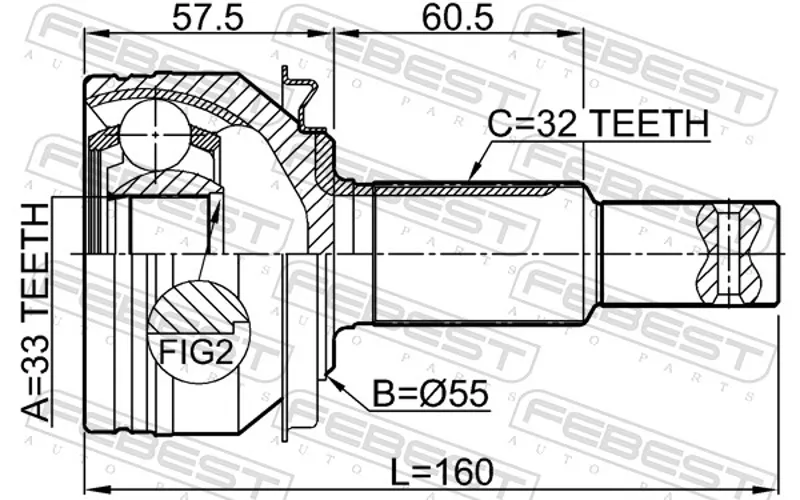 - 0210-L33 ШРУС наружный 33x55x32 NISSAN TEANA 14- 0210-L33