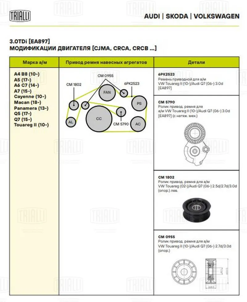 - CM1802 Ролик генер. для а/м VW Touareg (04-)/Audi Q7 (06-) 3.0 TDI (CM 1802)