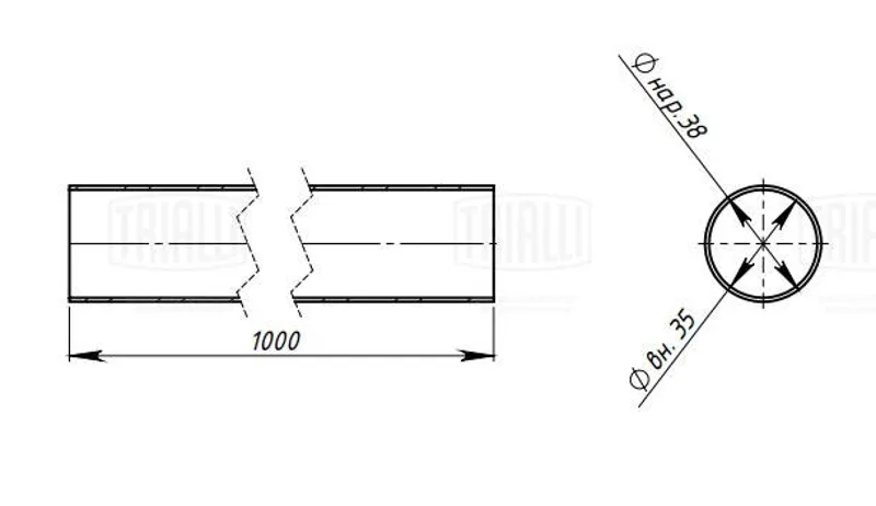 • Труба глуш. прям. 38х1000 (d=38х1.5, L=1000мм) (алюм. сталь) (EMC 0138)