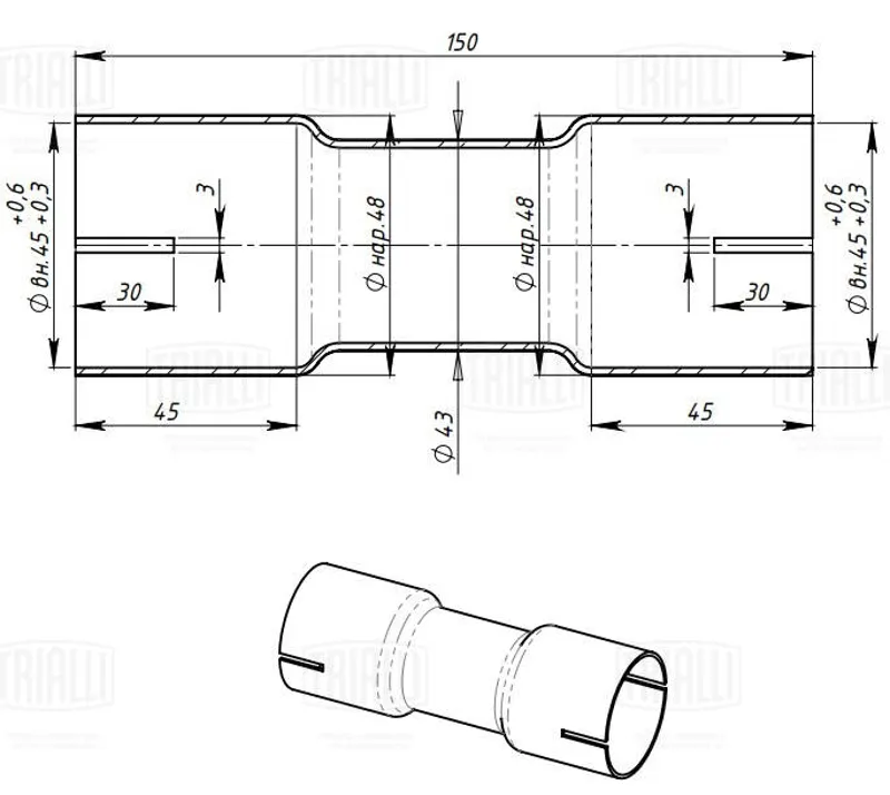 - Соединитель труб глушителя под хомут d45/d45 L150 (нерж. алюм. сталь) (EMP 4545) EMP 4545