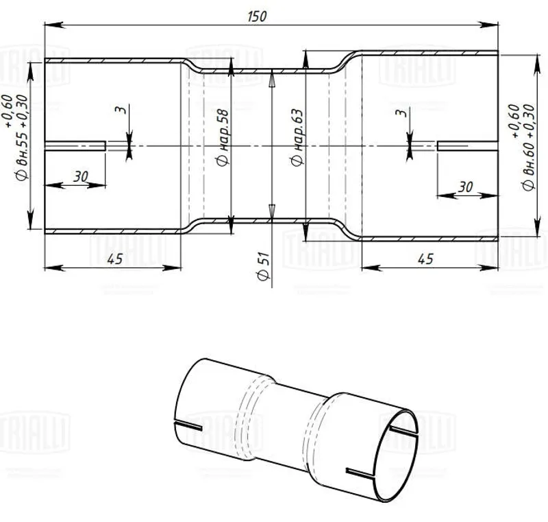 • TRS5560 Соединитель труб под хомут UNIVERSAL /для трубы d=55/60mm L=146mm TRS5560