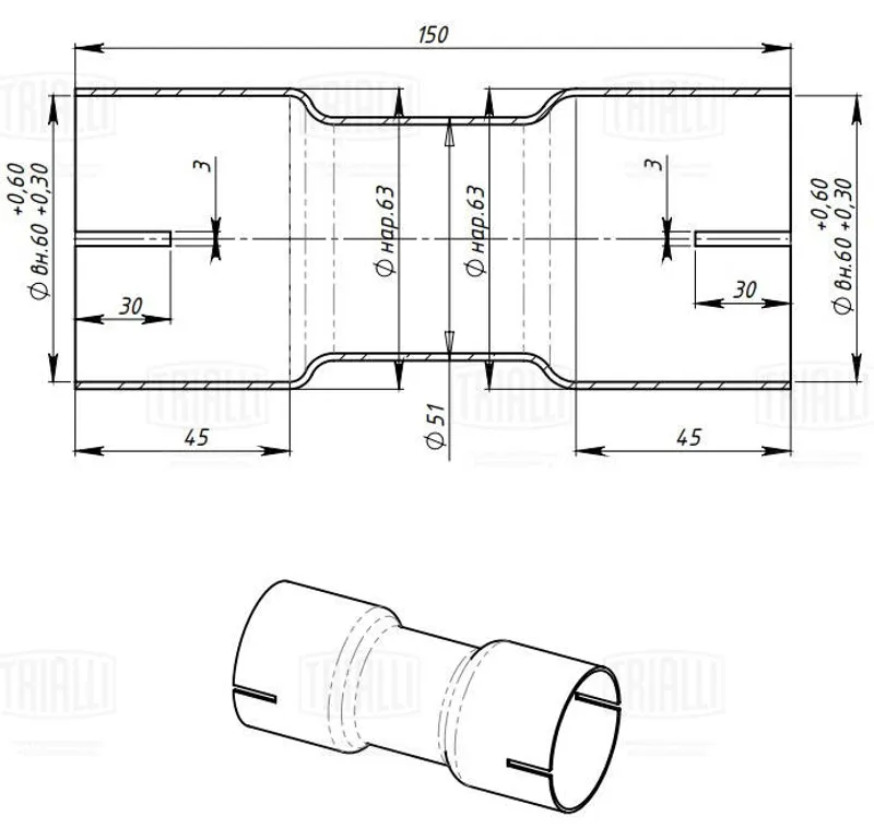 - EMP6060 Соединение труб глушителя алюм. под хомут d=60/d=60 (EMP 6060)