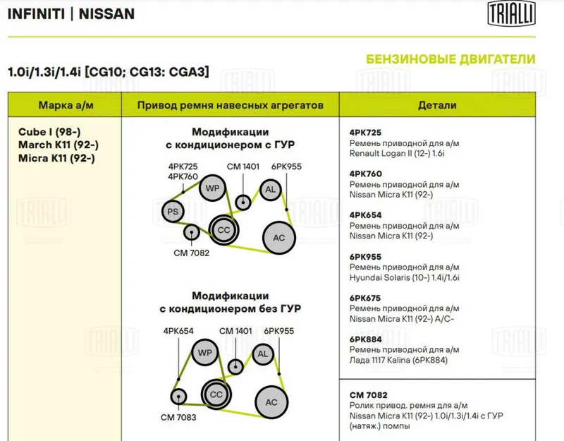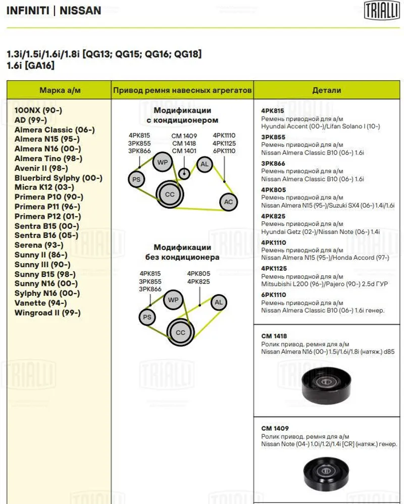 - Ролик натяжной приводного ремня NISSAN Almera (N16)/Primera (P12) 1.5/1.6/1.8L CM 1401