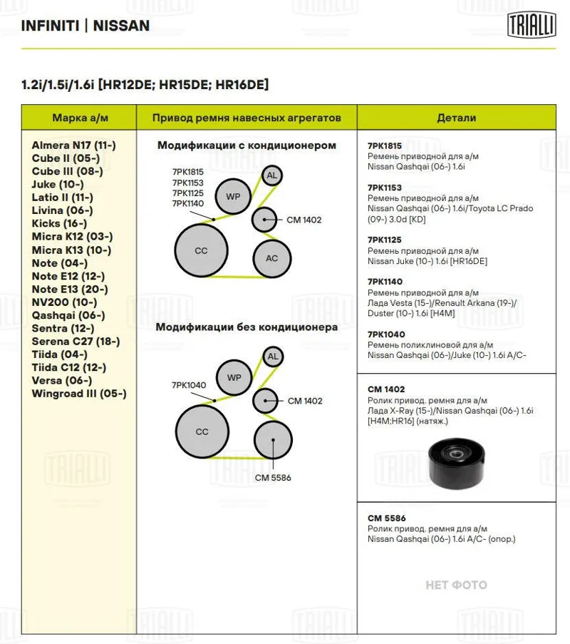 - CM 1402 Ролик натяжной приводного ремня NISSAN Note/Tiida/Qashqai mot.1,6L CM 1402