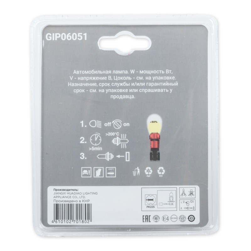 - GIP06051 Лампа 12V H3 100W +50% PK22s 5000K 2 шт. блистер GIP06051