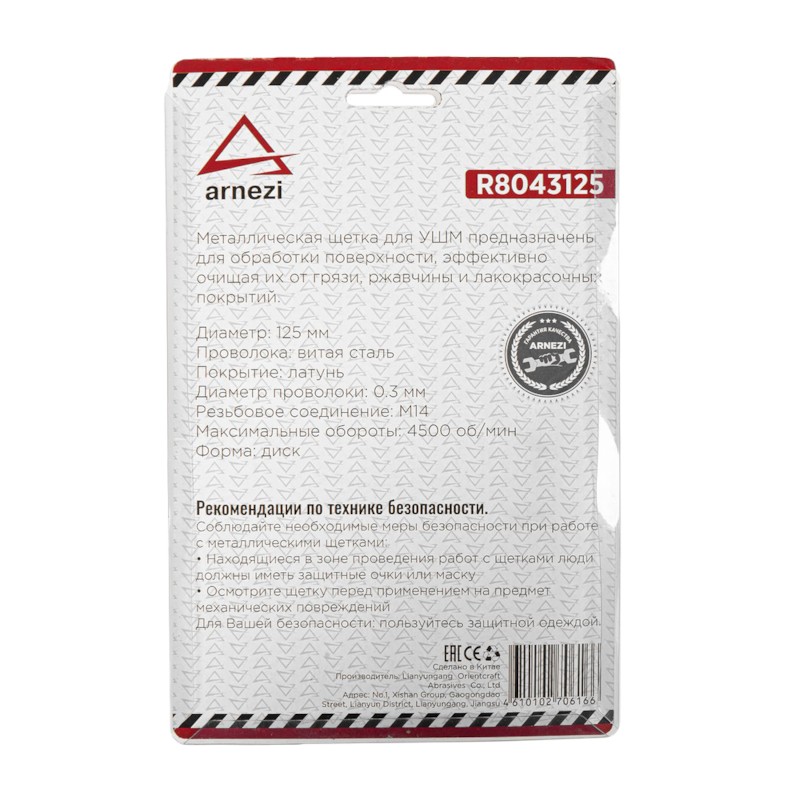 - R8043125 Щетка для УШМ плоская 125 мм, посадка M14, латунированная проволока R8043125