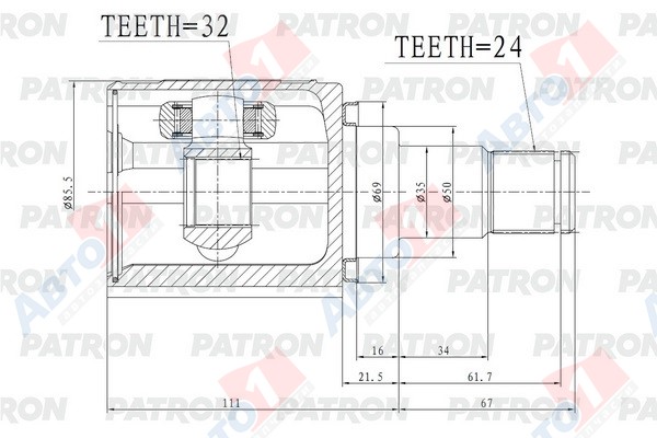 - CO-1843A ШРУС наруж.TOYOTA Camry(V50) 2.0-2.5 11-17