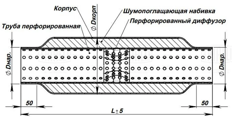 - Пламегаситель стронгер 50/76/400 UNIVERSAL /dизд=76mm, dтрубы=50mm, Lобщая=400mm UNIVERSAL S50400G