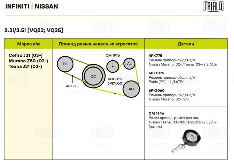 - Ролик приводного ремня NISSAN Maxima(A32/3) 2.0-3.0 94-02 / Murano(Z50) 3.5 04-07 / Teana(J31) 2.3-3