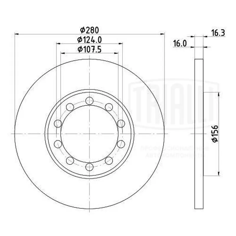 - Диск торм. для а/м Ford Transit (06-) зад. d=280; thk=16; PCD-5/124 | зад прав/лев |