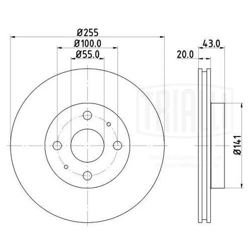 - Диск тормозной для а/м Toyota Yaris Verso (99-)/Echo (99-) d=255 | перед |