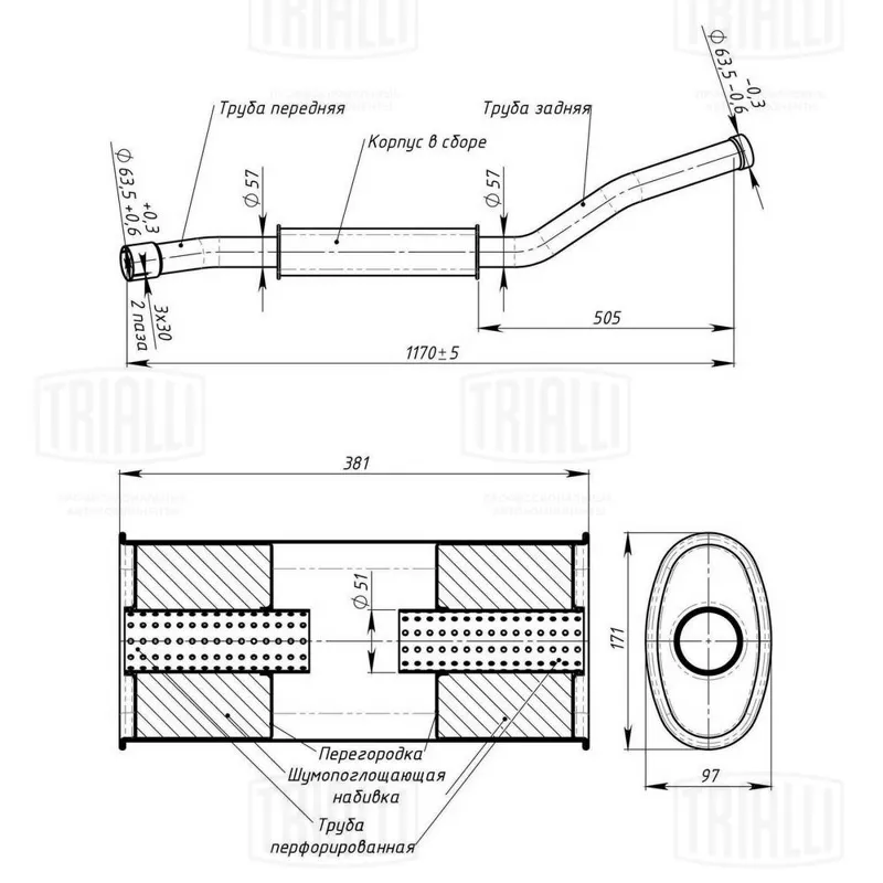 - EMM 3504 Глушитель универсальный (овальный) 97х171, L400, d50 (EMM 3504) EMM3504