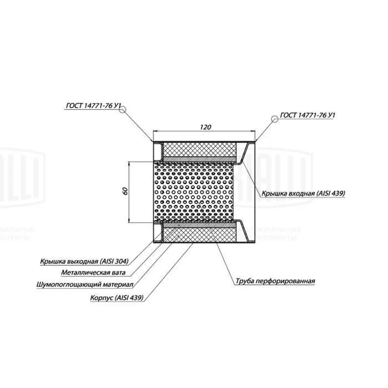 - Пламегаситель коллекторный 100/120-55 (нерж. алюм. сталь)