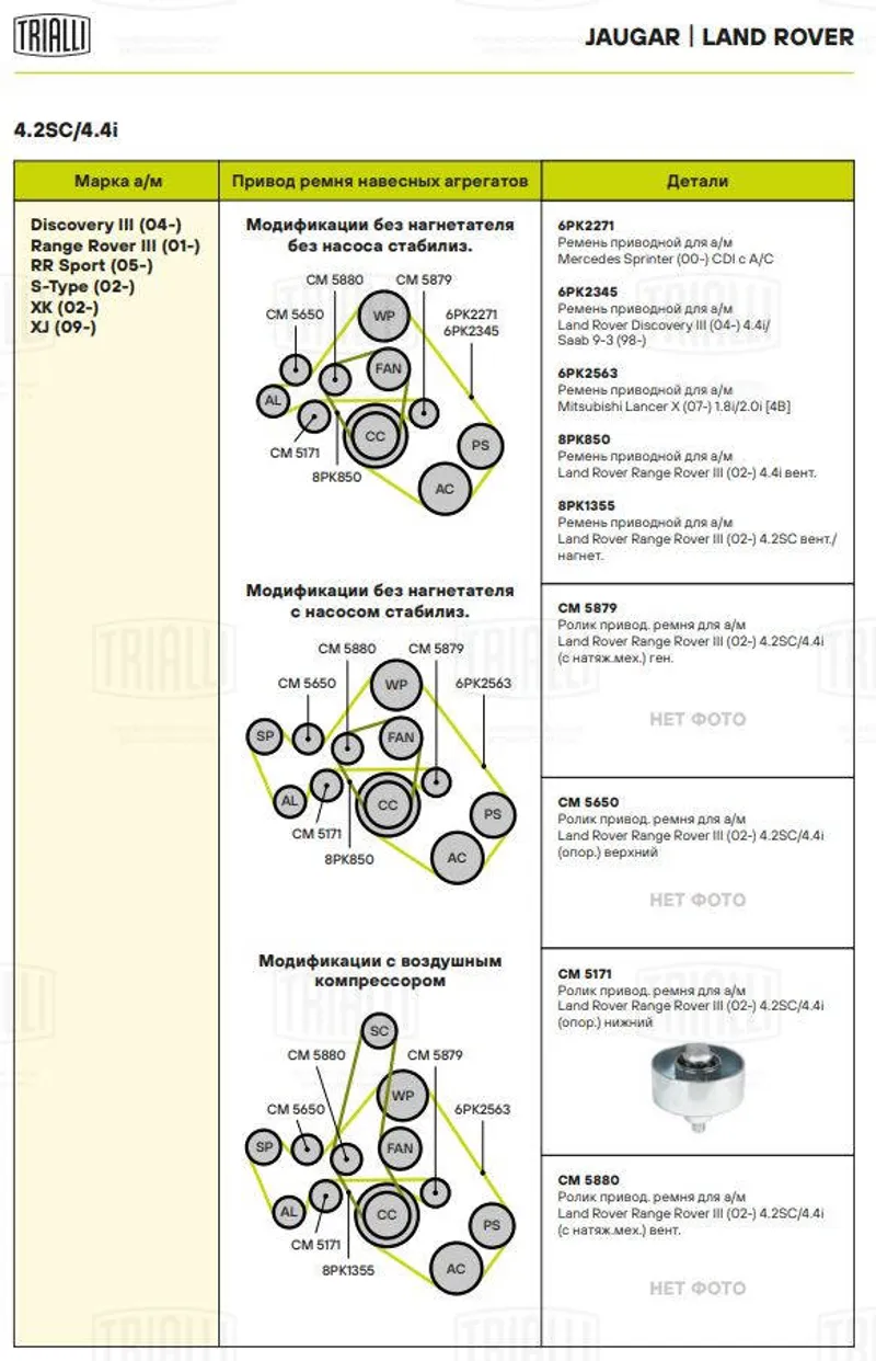 - CM5171 Ролик привод. ремня для а/м Land Rover Range Rover Sport (06-) 3.6d (только ролик) (CM 5171) (TRIALLI)