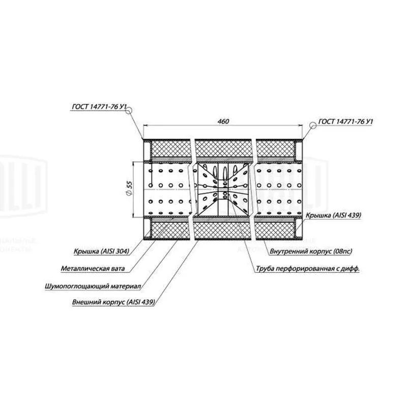 - ESM10046055d Пламегаситель универсальный 100/460-55 с перф. диффузором (ESM 10046055d)