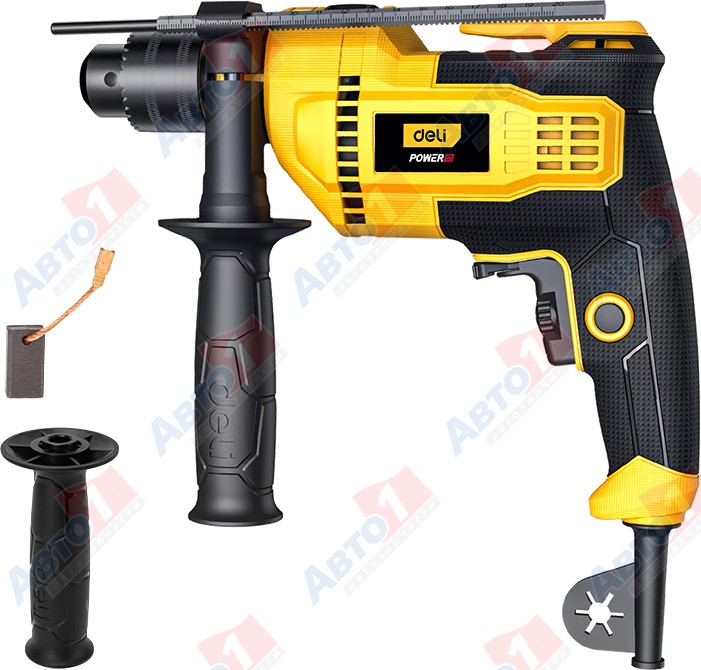 DELI Дрель ударная "Deli CZ13-E6" сетевая, 820 Вт, 3000 об./мин, 1 скор., коробка, желтая