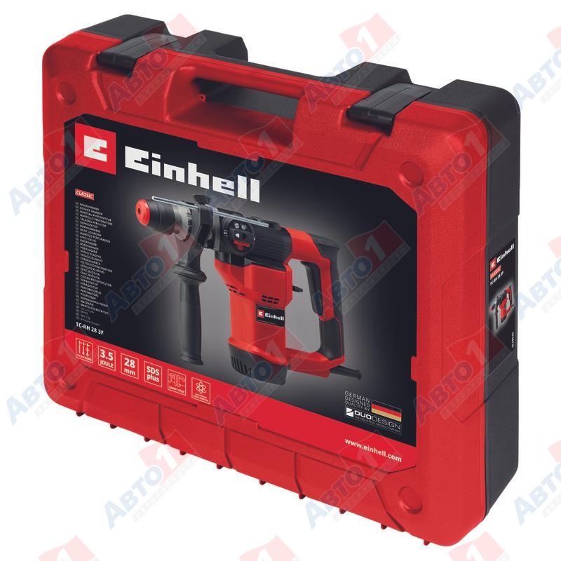 Перфоратор Einhell TC-RH 28 3F сочетает три функции в одном инструменте: сверление, сверление с молотком и долбление с остановкой вращения. Мощность 950 Вт, пневматический ударный механизм, сила удара 3,5 джоуля и электроника с регулировкой скорости обеспечивают эффективную работу и подходящие условия для работы с материалом. Плавно регулируемый ограничитель глубины, как и редуктор, изготовлен из прочного металла. Полуавтоматический SDS-Plus патрон обеспечивает легкую замену сверл и зубил. Перфоратор удобно лежит в руке, благодаря дополнительной рукоятке с мягкой накладкой, которая надежно крепится с помощью ребер жесткости. Перфоратор Einhell TC-RH 28 3F поставляется в практичном кейсе для транспортировки и хранения.