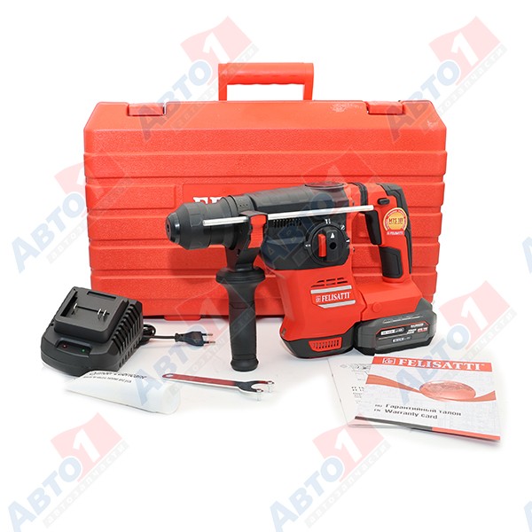 FELISATTI FT15827 Аккумуляторный перфоратор 26мм (кейс, 1 аккум. 4,0Ач, ЗУ 4А), 18В, 26 мм, 4 Дж, 0-5200 уд/мин, 0-1200 об/мин холостого хода