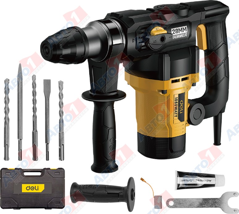 DELI Перфоратор "Deli DC28-E1" сетевой, 1050 Вт, 4,8 Дж, 28 мм, чемодан, желтый/черный