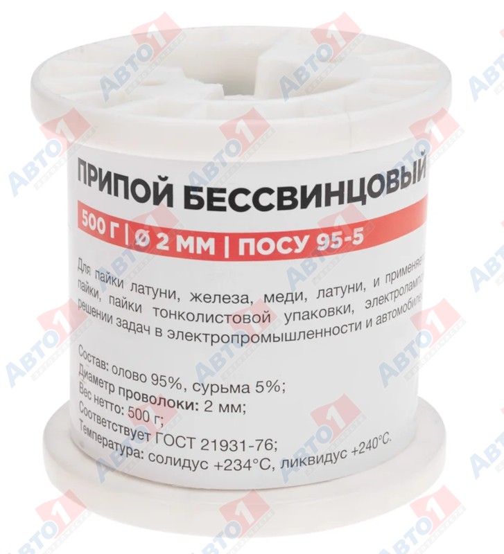 REXANT 09-3517 Припой ПОСу 95-5, 500г, Ø2мм, (олово 95%, сурьма 5%), бессвинцовый, ГОСТ 21931-76, катушка R