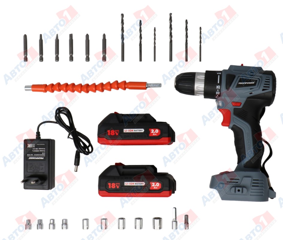 PROFIPOWER E0147 Аккумуляторный бесщеточный шуруповерт с набором E0147 MKBL-18BT (Li-ion-2шт, 18В, 2.0Ач, 40Нм, 0,8-10мм, З/У, в кейсе)