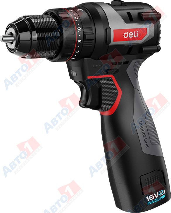 DELI Дрель-шуруповерт "Deli CZ16-1D2" аккум., 16 В, 2 акк., 2,0 А/ч Li-lon, 45 Нм, коробка, черный
