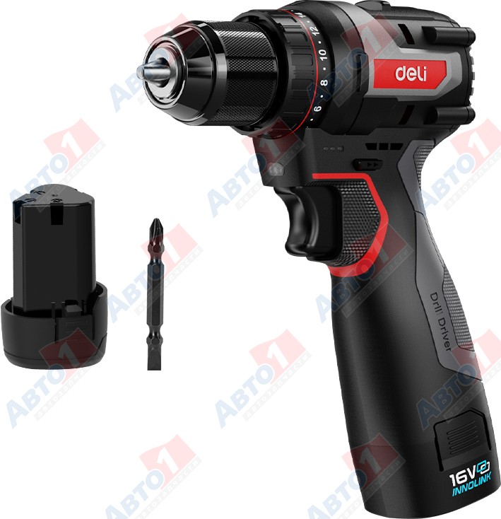 DELI Дрель-шуруповерт "Deli DZ16-1D2" аккум., 16 В, 2 акк., 2,0 А/ч Li-lon, 45 Нм, коробка, черный