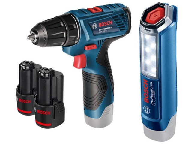 BOSCH 06019F7005 Аккум. дрель-шуруповерт GSR 120-LI в чем. + фонарь GLI 12V-300 (12.0 В, 2 акк., 1.5 А/ч Li-Ion, 2 скор., 30 Нм, шурупы до 7 мм)