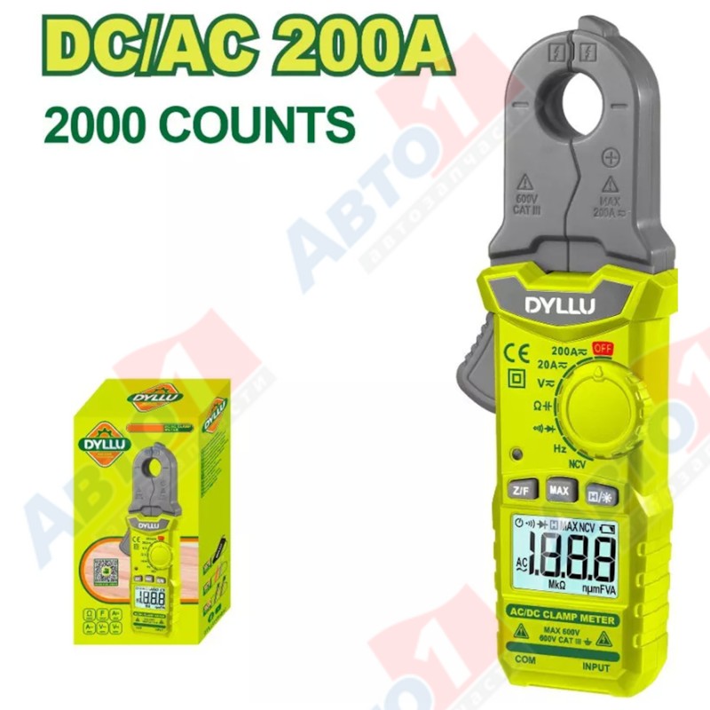 DYLLU DTDM65015 Токовые клещи DTDM65015 2A/20A/200A,2V/20V/200V/600V,Индикация низкого заряда батареи, автомат устройство,R03 (AAA) батареи-2 шт,цветная коробка