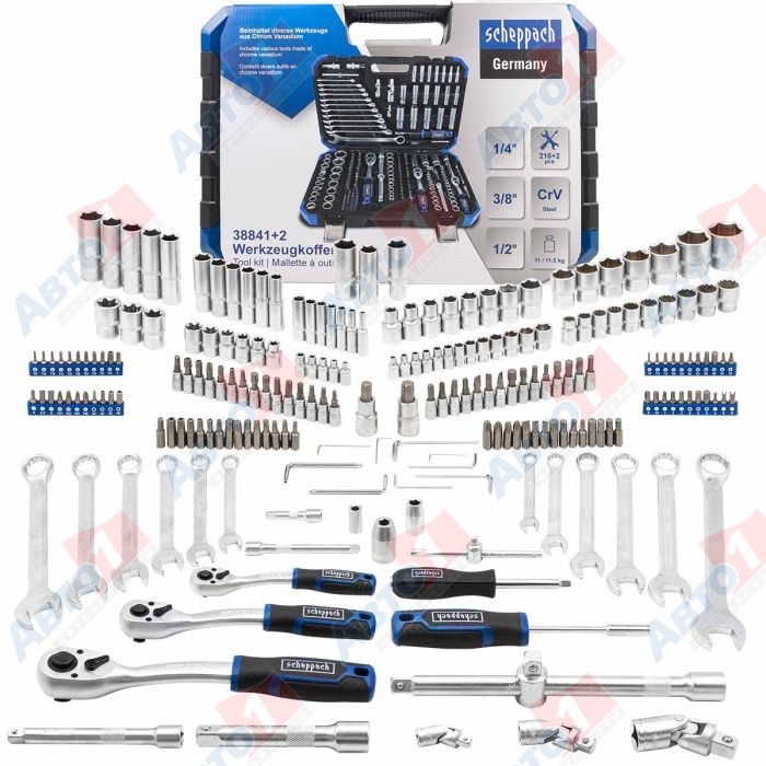 Scheppach Sch-38841+2 Набор инструментов 216+2пр. 1/4", 3/8", 1/2" (6гр.) (4-32мм)