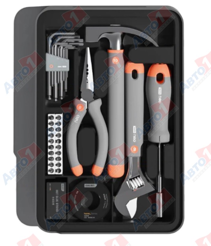 DELI Набор ручного инструмента HS H1001-ADE 15 предметов, бокс, Soft Touch, оранжевый