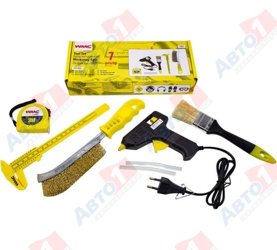 WMC TOOLS Набор инструментов 7пр.(клеевой пистолет,стержни дли пист.-а,рулетка,кисточка,щетка по мет.,штангенциркуль)