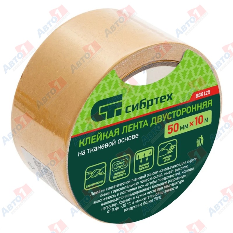 СибрТех 888125 Лента клейкая двусторонняя, 50мм х 10м, на тканевой основе
