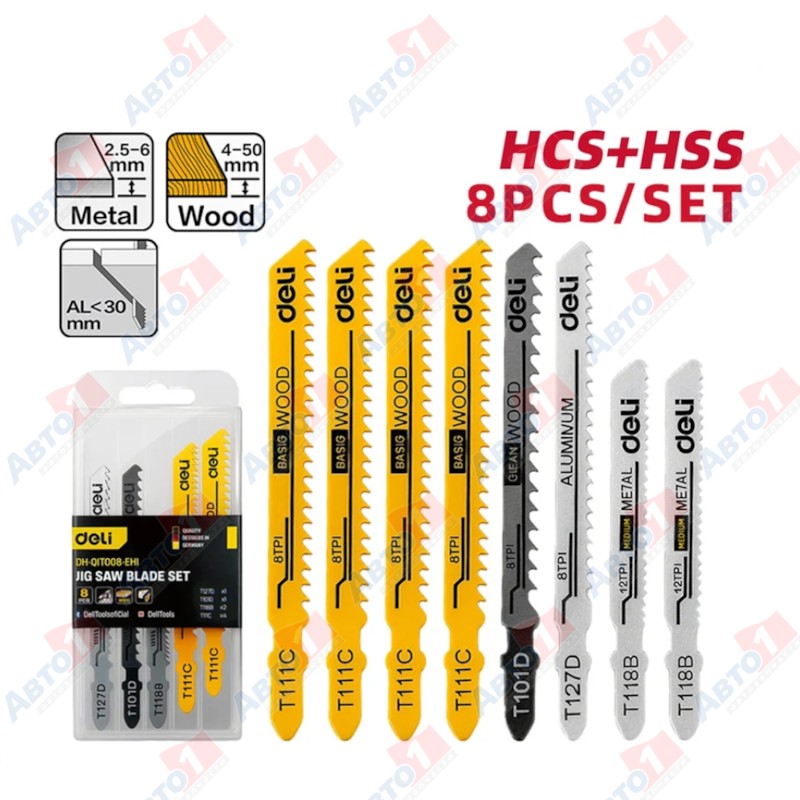 DELI Набор пилок для лобзика универсальный YS EDH-QJT008-EH1 8 шт, (T127D, T101D, T118B, T111C)