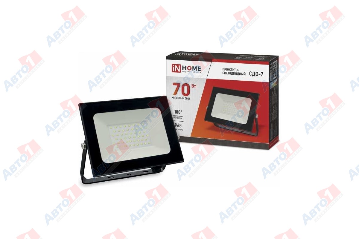 INhome 4690612034645 Прожектор светодиодный СДО-7 70Вт 230В 6500К IP65 черный IN HOME