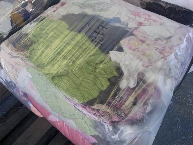 Х/б смесовые ткани, цветные рубашки с содержанием полусинтетических волокон не более 35%; постельное белье, простыни и наволочки с небольшими загрязнениями; вельветовые, трикотажные, плотные хлопчатобумажные изделия (джинс, роба, вельвет - не более 5 % в брикете).
