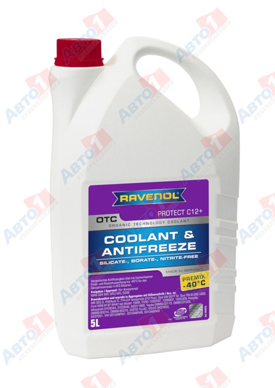 RAVENOL OTC PREMIX – готовая к применению охлаждающая жидкость на основе 1.2-Ethandiol (моноэтиленгликоля) и ингибиторов коррозии с использованием органической технологии OAT. Не содержит бораты, нитриты, силикаты. Обеспечивает долговременную (до 5 лет) антикоррозионную защиту двигателя как зимой, так и летом. Не опасен для окружающей среды.
