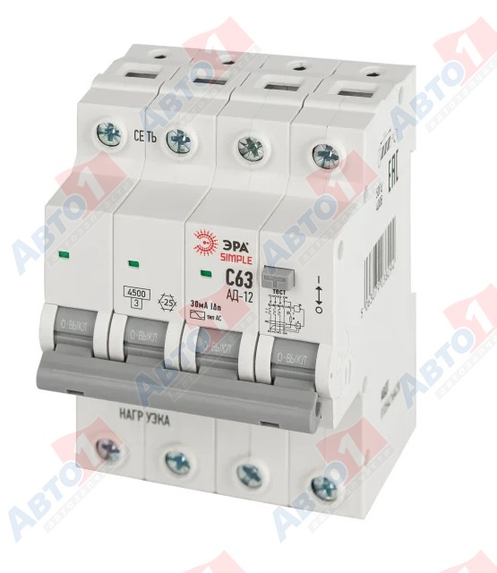 ЭРА Б0058931 АВДТ 4,5кА SIMPLE D12E4C63AC30 АД-12 электронное 3P+N С63 30мА тип АС